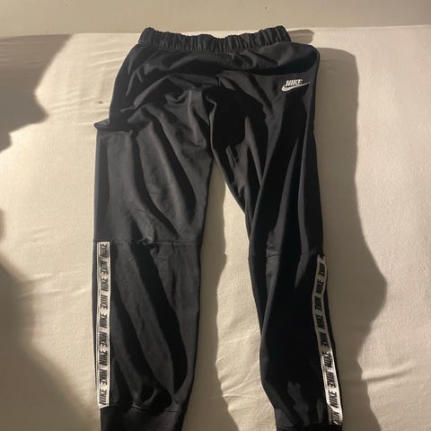 Bukser, Nike, str. 31, Sort, God men brugt, Sorte jogging bukser fra Nike i str M ( 31/33. De er lettere brugte men kun brugt som hjemme bukser. fejler ikke noget og kommer fra et røgfri hjem.