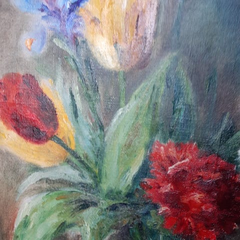 Oliemaleri, O V B, motiv: Blomster/Have, b: 75 h: 65, bolmstermotiv af O V B