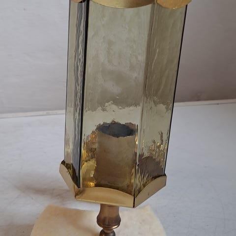 Væglampe, Antik bronze lampetter, 28 cm høje væg lampetter. Mærke på lampetten GW 1496. Matterede glas lampeskærme. Læg mærke til at det er to forskellige. Ledningerne snoet stof guldfarvet er 165 cm lange. Uden stik.