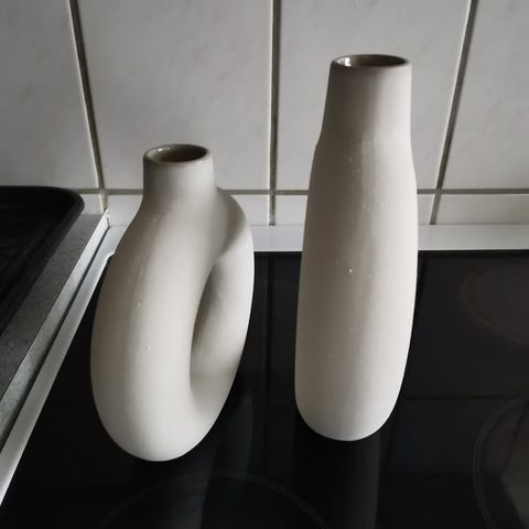 Vase, 2Have, 1 Stk. ny og ubrugt vase i keramik og træ fra 2Have. Fra nu lukket butik. Bemærk at der stikker lim ud øverst fra producentens side.