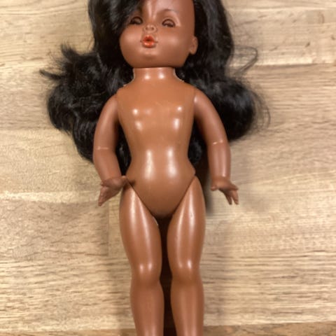 Hånddukke, Pusle dukke, Ratti dukke, Original Pusle dukke, Ratti dukke. Dukken er i meget fin stand bortset fra en del ridser på kroppen. Hun har brune øjne og blå øjenskygge. Arme og ben er faste. Tyllen på ærmerne er lidt defekt.