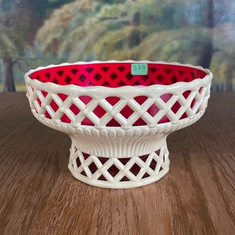 Frugtskålen har en hvid plastik bund og flot lime grøn vævet sider.