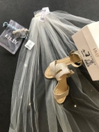 Brudekjole, Lilly, str. 36, Polyester/bomuld indv., Ubrugt, Brudekjole med tilbehør. Hårspænde med perler, slør med blomster og perler, underkjole, samt perlebælte, dog uden skoene på fotoet, Samlet nypris 5900 sælges for 1600 kr. Blev aldrig brugt.