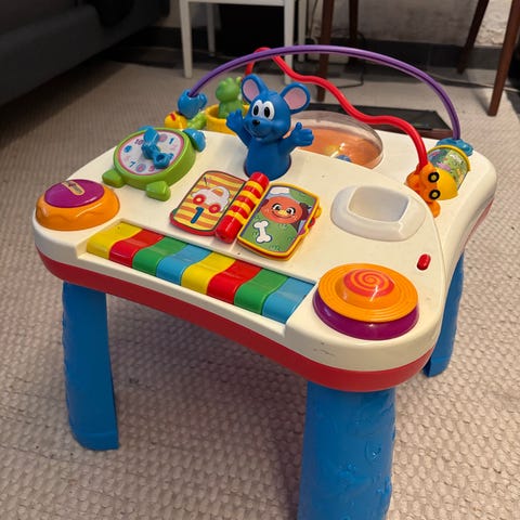 Aktivitets panel/ tavle, Chicco, aktivitetslegetøj, Aktivitets tavle til det små, med behagelige lyde, ting der kan rykkes på, rulles, flyttes , spilles på piano. Piano kan tages af, og bruges separat i barnevognen, eller en anden sted.