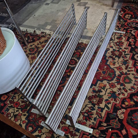 Vintage hylde, Ikea, hattehylde / skohylde / væghængt tøjstativ fra Ikea fra 1990erne. Sort metal med trådnet/gitter. Se mål på billede 2. Velegnet i køkkenet til gryder, pander og køkkenredskaber. Jeg har 2 stk til salg. Prisen er pr stk.