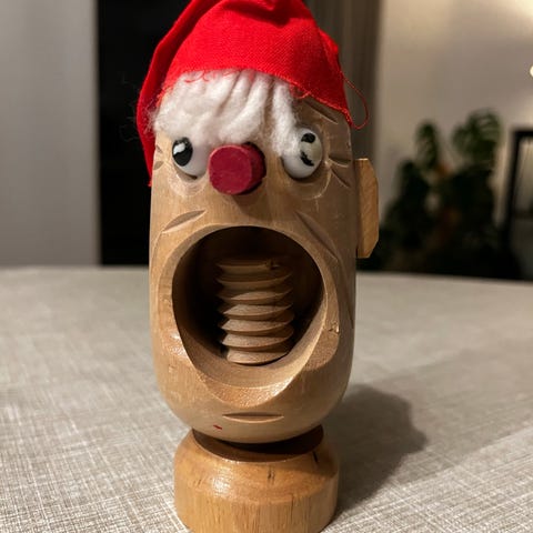 Skål til julenødder og nøddeknækker, Smuk træ nøddeskal og knækker. L 42cm b26 cm