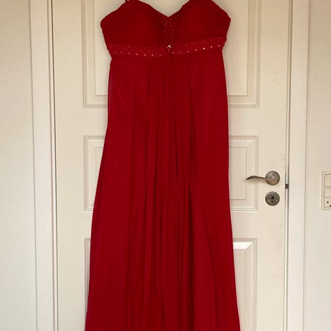 Festkjole, Str. 36, str. S, Rød, Chiffon og satin , Næsten som ny, Rød galla- eller festkjole i pangfarve som tiltrækker sig opmærksom ved enhver fest.
