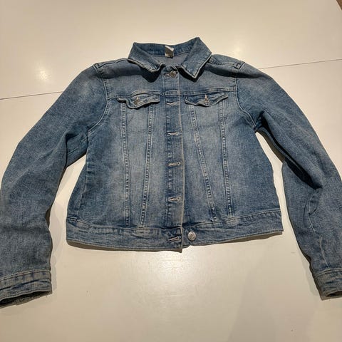 Jakke, Cowboy jakke m/ foer, “Hjemmesyede”, str. 128, Jakke syet af brugte bukser, foer m mønster og rib i ærmer som vindfang.