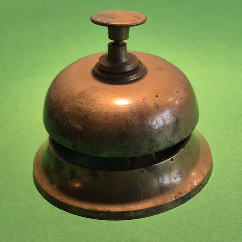 Også kaldet en deskbell, receptionsklokke eller bordklokke.