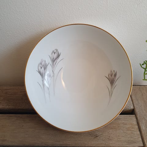 Kgl.Skærsommernatsdrøm Marguerittestellet Flot Stor Oval Skål med sart Rosa Blomster motiv Design af Arnold Krogh Mål 10,5 x 32 cm.