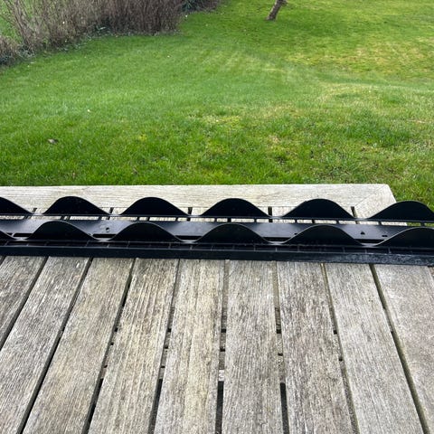 Rygning, RIAS , b: 10 l: 100, Rygningsprofil i sortlakeret metal. Har 5 stk. - sælges kun samlet! Der sidder stadig beskyttelsesplast på (derfor det kan ligne ridser, men det er bare luftbobler i plastic). Prisen er pr. stk.