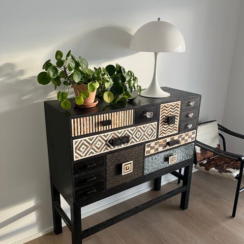 Hver skuffe har sit eget særpræg og med forskellige håndtag. som. Ny Nypris 6200,-