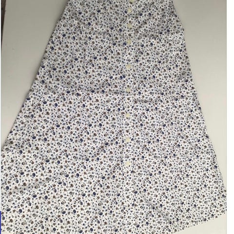 str. 42, Fransa. 3 for 2, Hvid slå-om nederdel med beige og guld broderier og perler. Forstykket er dobbelt. Lukkes med 2 knapper i den ene side og 2 bindebånd i den anden side. Er som ny og kun brugt få gange. 55% hør 45% bomuld. Vask ved 40°. Længde 66cm talje 89cm. Jeg har mange tøj annoncer på dba. Rabat: ved køb af 3 tøj annoncer - få den billigste gratis. Evt søg på: ksø tøj
