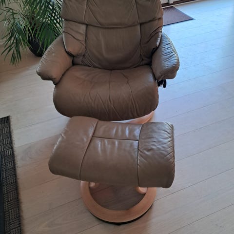 Lænestol med fodskammel i skind