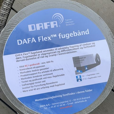 DAFA Flex 600, Ny DAFA Flex 600 fugebånd. Dateret d. 9/2021. Jeg har 4 stk ruller tilbage. Det er meget nemt at arbejde med. Se evt. de to sidste billeder for monterings resultat. ;-)