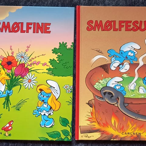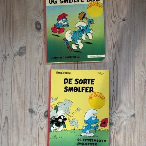 Vi har disse lidt anderledes Smølfe-bøger til salg!