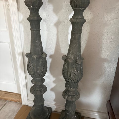 Søjlerne har den originale fine patina med nænsom restaurering, og kan / skal justeres i vatter i bunden med evt filt-gummi-puder.