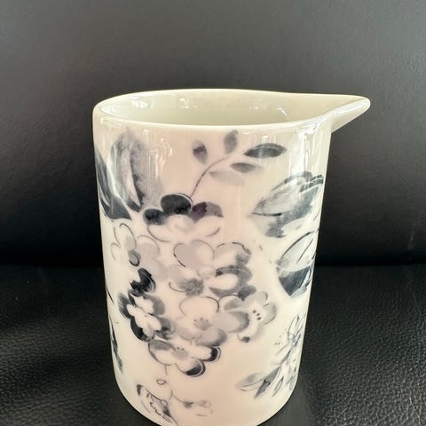 Porcelæn, Kande, GreenGate, GreenGate mælkekande 1/2 L , mønster Amira white (udgået) grå / hvid / sølv. Højde 11,5 cm.