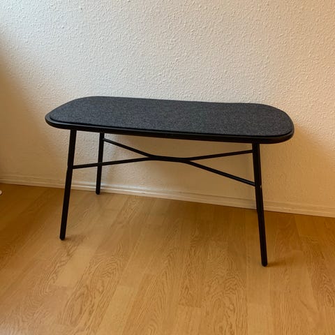 Bænk, Menu, MENU bænk/bord i sort m/messing skruer som har et elegant og enkelt design med stilfuld grå filthynde som passer perfekt til bænkens sorte look.