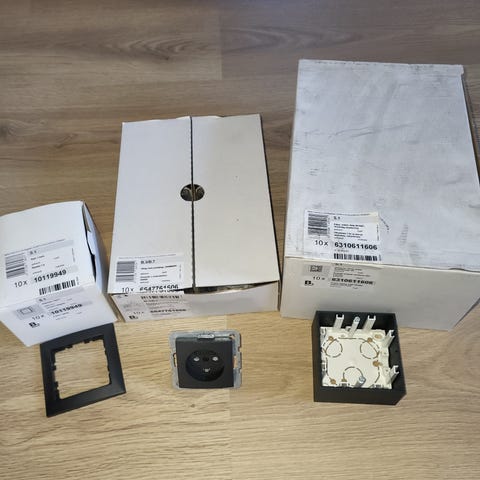 Vi har 1 stk. helt ny SEKO udendørs DK stikkontakt enkelt med jord i grå.