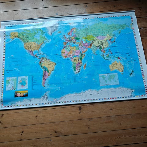 Verdenskort i stof - aldrig brugt, da det er et fejlkøb