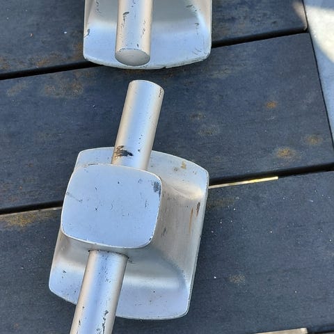 Pullert, 3 klamper, 2 bøjler, kraftigt gods, fra en 42 fods. Sælges kun saml...
