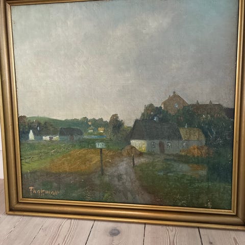 Oliemaleri, Alex Tankmar, motiv: Andet, stil: Naturalistisk, b: 38cm h: 48cm, Sælger dette stemningsfulde maleri af Tankmar