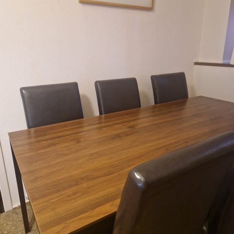 Spisebord m/stole, Valnød/Læder, Magasin / Spanske