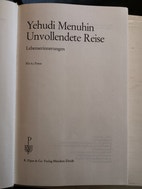 UNVOLLENDETE REISE (yehudi menuhin), Yehudi Menuhin, genre: biografi, Lebenserinnerungen - Mit 63 Fotos. Sonderausgabe 1979. "Hardback" 462 Seiten. R. Piper & Co. Verlag, München, Zürich. Ûbersetzung aus dem englischen Manuskript von Isabella Nadolny (Kapitel 1 bis 8) und Albrecht Roeseler (ab Kapitel 9)