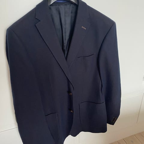 Jakkesæt, Stones, str. XXL, Sort, Polyester uld, Næsten som ny, Flot nålestribet jakkesæt jakke str 56 buks str 54
