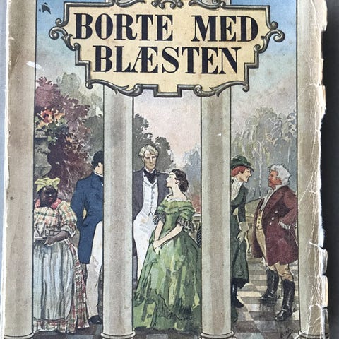 BORTE MED BLÆSTEN, Margaret Mitchell, genre: roman, I 4 lækkert indbundne bind (bordeaux) med guld på ryg - i god stand. Format 17x12cm. Steen Hasselbalchs Forlag, 1955. I alt 1527 sider. Oversættelse ved Erik Freisleben efter 'Gone with the Wind'.