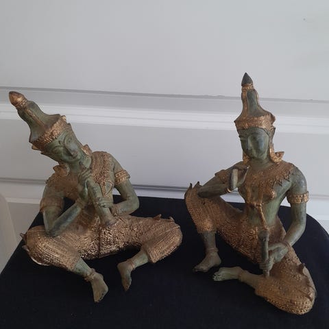 2 MUSIKERE LAVET I METALSKROT, ?, motiv: 2 JAZZ MUSIKERE, 2 MEGET SJOVE OG DEKORATIVE MUSIKERE LAVET I METALSKROT OG EFTERFØLGENDE LAKERET.