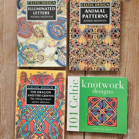 Celtic Design- A beginners Manual. Thames & Hudson 2002 160 sider. illustreret med 258 tegnede illustrationer over Celtisk Calligraphy, engelsk tekst, hæftet, som ny. NB. Sælges kun samlet og sender gerne