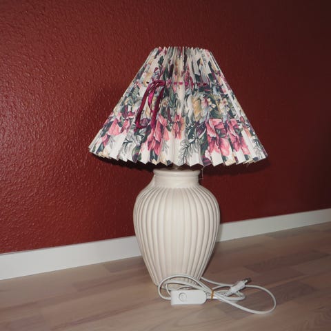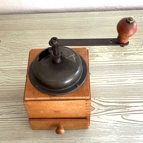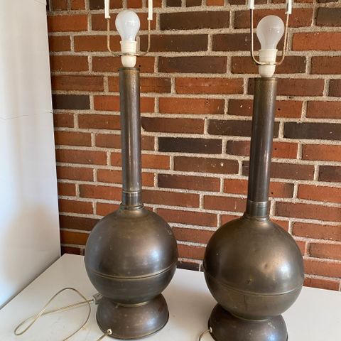 Lampe, Tragt fra gl. kaffe mølle, Messing, total højde 89cm, diameter bund 25 cm