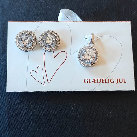 Andet smykke, sølv, Sterling sølv med stempel - 925. Stenene er cubic zirkonia, diamonique kvalitet - CZDQ. To sider, mørke blå er blue goldstone og den brun er brun goldstone. Købt udlandet. En dejlig æske følger med
