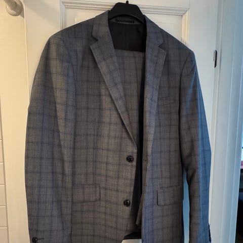 Jakkesæt, J. Lindeberg , str. S, Granitgrå, 100% uld, Næsten som ny, Jakkesæt af mærket J. Lindeberg i 100% uld. Str 48 både bukser og jakke. Farven hedder granitgrå. Den kan være lidt svær at fange på fotos. Men kom evt og kig på det.
