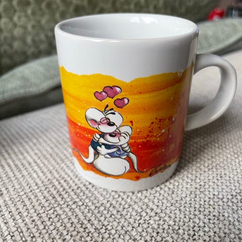 Porcelæn, Venskabs kop, Didl, - gode venner hænger ikke på træerne (de ligger i vandet/moticet) velegnet til venskabs gave