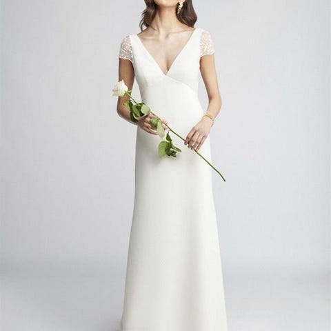 Fremstår rigtig pæn uden pletter. Er renset på renseri efter vores bryllup.