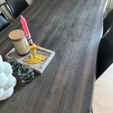 Anden arkitekt, bord, Plankebord, Det smukkeste plankebord/spisebord med trapez ben og de fineste åretegninger, bordet er i flot stand!