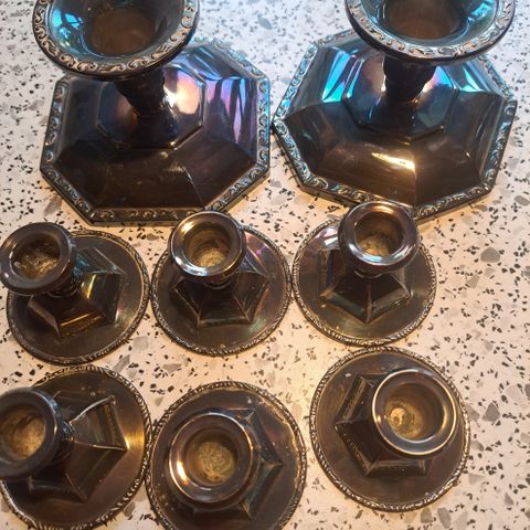 Vejer tilsammen lidt over et halvt kilo, der er filt på bunden, så jeg kan ikke se om det er massivt sølv.