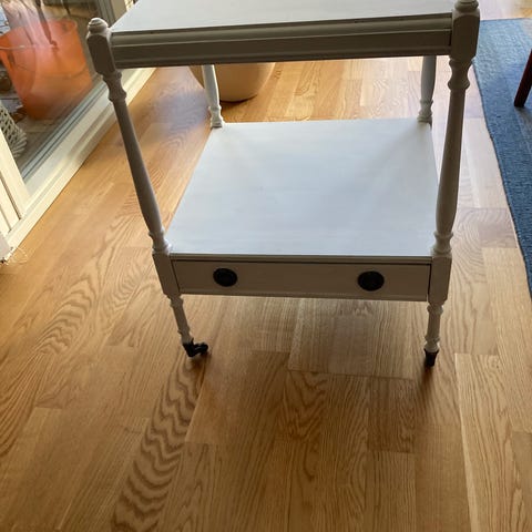 Hvidmalet bord, Lækkert lille patineret sengebord/side bord eller små møbel bord i træ med en hylde.