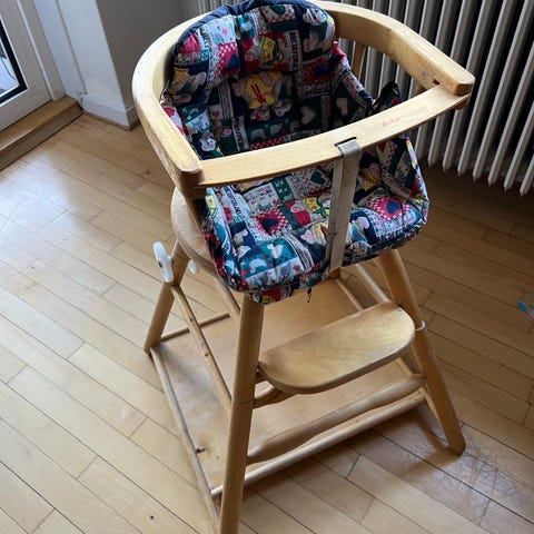 Højstol, Retro, Sælger denne retro højstol, der kan laves om til et bord.
