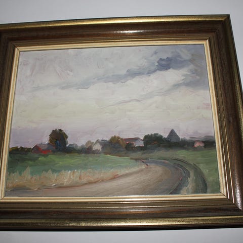 Maleri, Peter Skovmose, motiv: Pigen i køkkenet, Kopi af Anna Ancher. Mål 74x60 inklusiv ramme