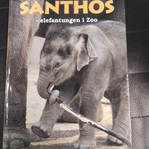 Billedbog. Den frække elefantunge Santhos driller dyrepasserne og de store elefanter, der er meget stærkere end Santhos. Santhos kommer derfor i elefantskole.