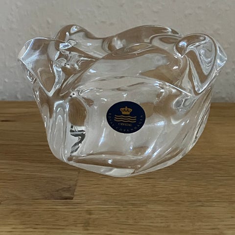 De skæve og lige linier mødes i bunden og danner det samme mønster som i toppen, bare forskudt. Uanset fra hvilken vinkel, man ser den femkantede, asymmetriske form, vil den virke levende og smuk med levende lys når mørket falder på.