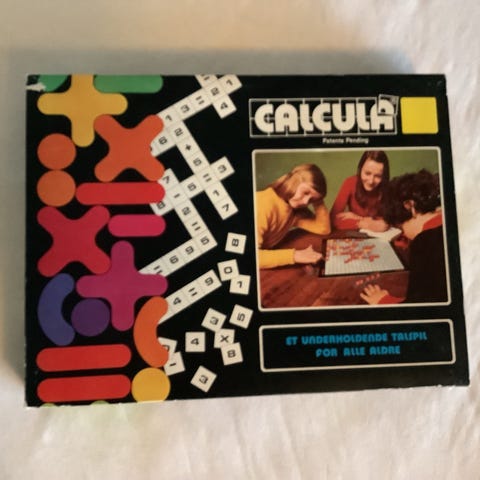Calcula, Familiespil, brætspil, Så er det med at træne hovedregning. Spillet mangler ialt 6 brikker ud af de 400 - 1 stk parentes - 3 stk lighedstegn - 1 4-tal og 1 5-tal. Uden betydning. Pæn stand alderen taget i betragtning