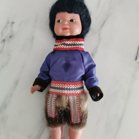 Samisk Dukke med Tradisjonell Drakt og Pels
