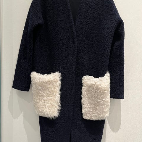 Cardigan, Anne Vest, str. 34, Sort, Uld med skindbesætning, God men brugt, Sort strikket Anne Vest cardigan/jakke. Skindbesætning på ryggen. Kan også bruges af en str 36/38. Længde 109 cm på det længste sted og 82 cm på det korte stykke. Oprindeligt købt til 3995 kr.