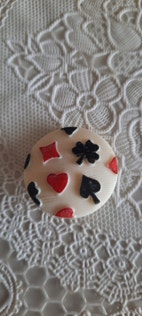 4 håndmalede porcelænsknapper med kortmotiv, Ca fra 1965 120 kr