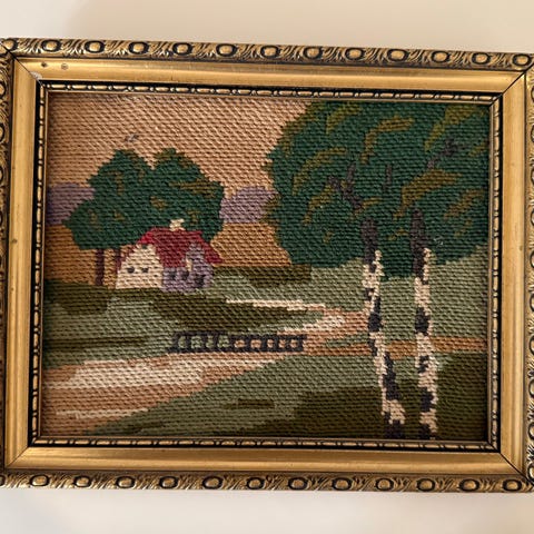 Broderi af Jesus, Smukkeste kunstværk af Jesus - håndsyet med uldtråd i flotte farver. Fyrretræsramme omkring.
